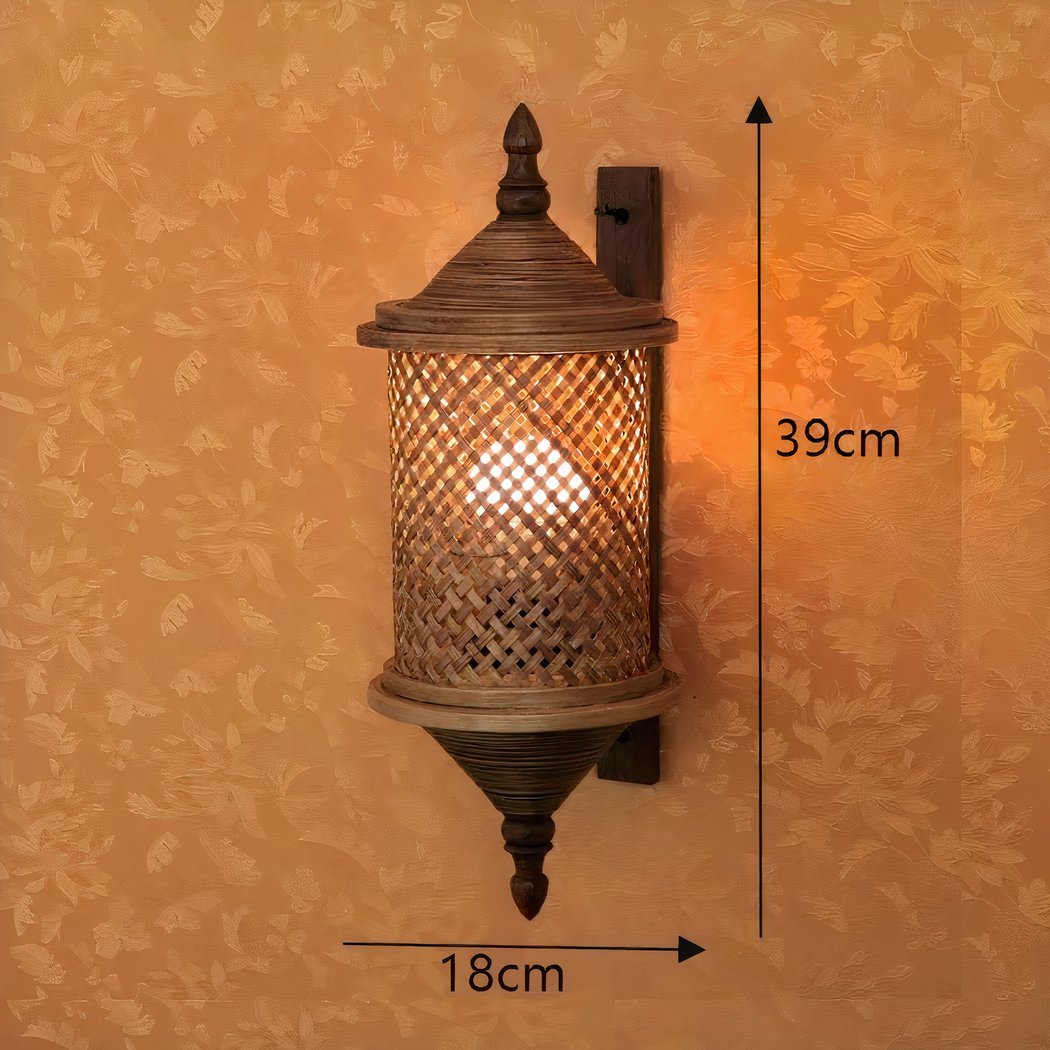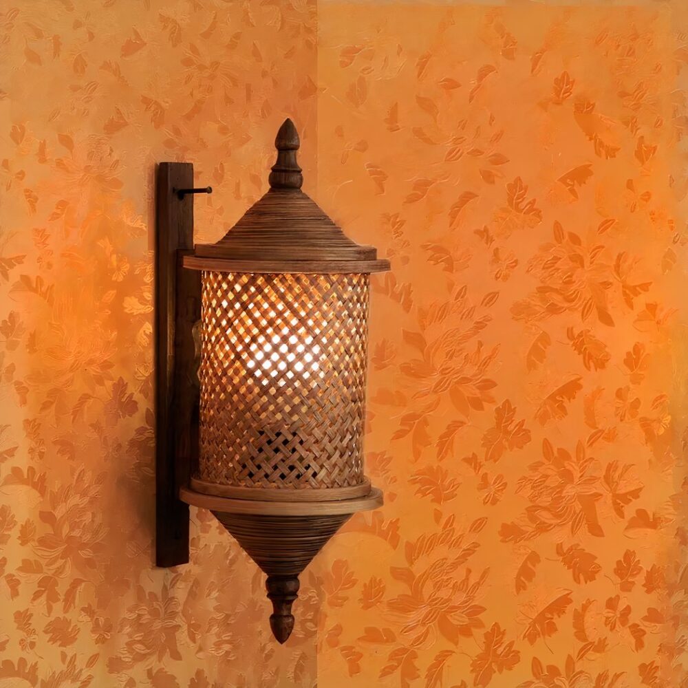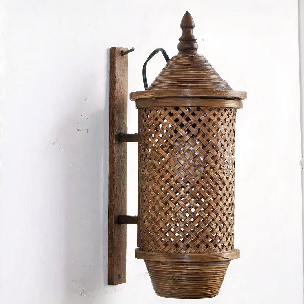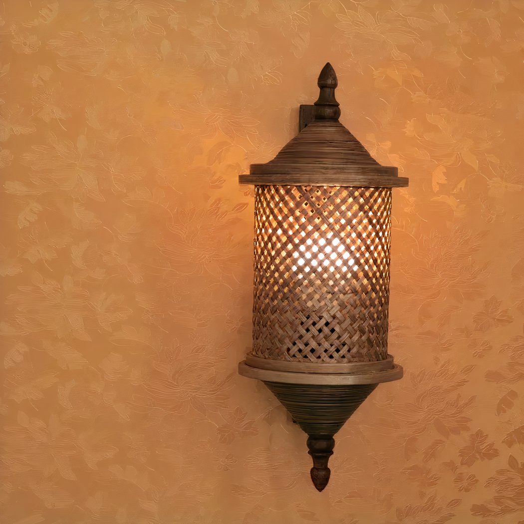 Handgefertigte Bambus-Wandleuchte im Laternenstil