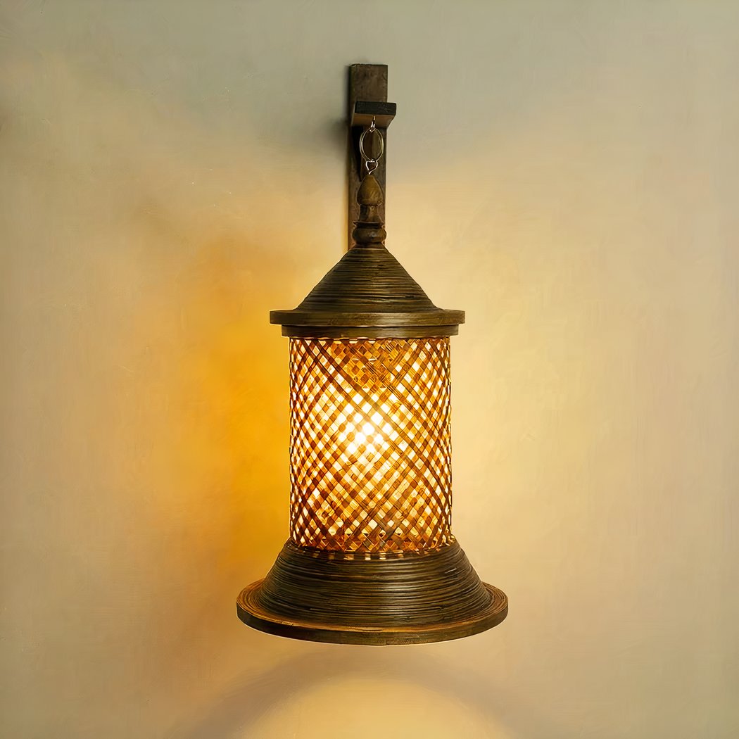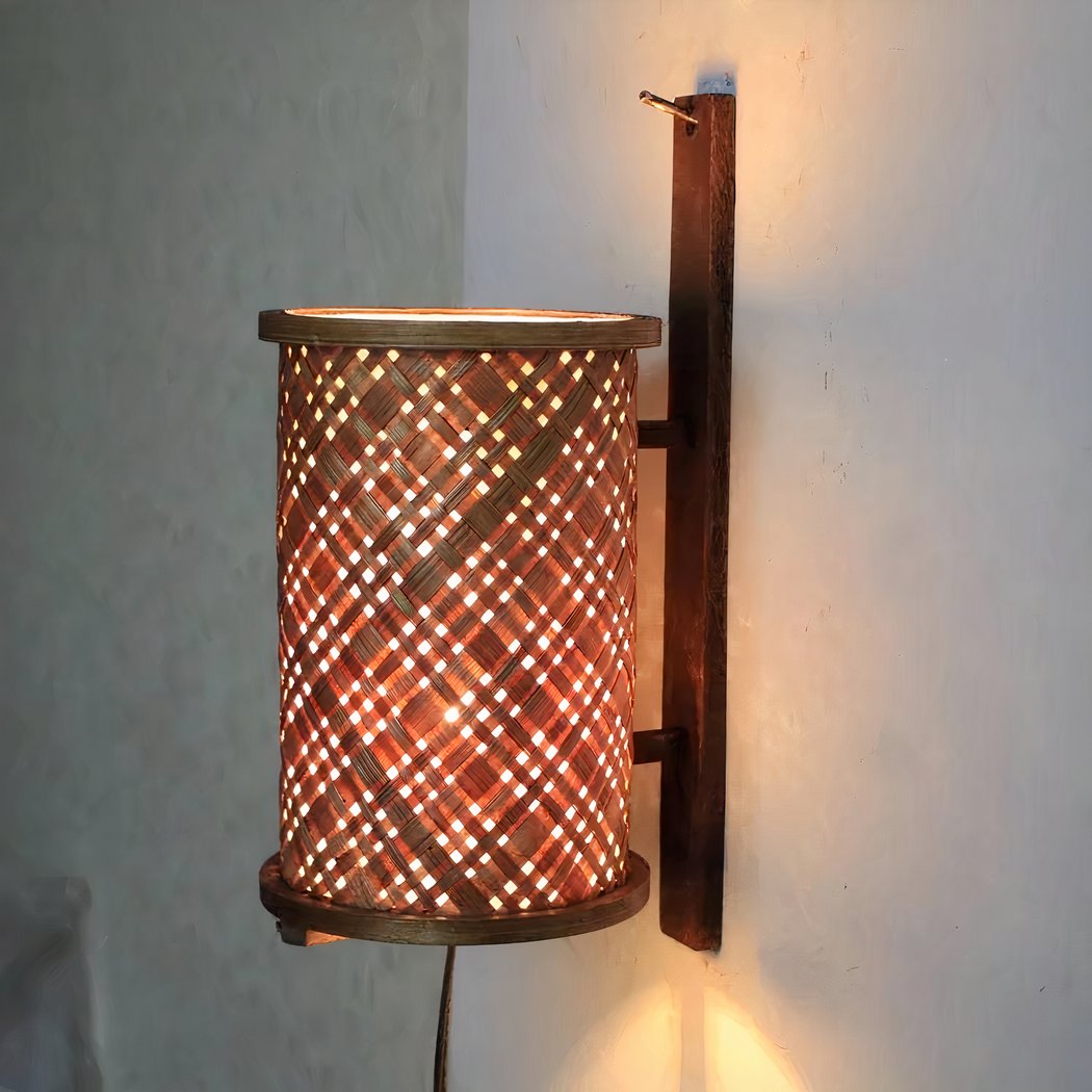Wandleuchte aus handgewebtem Bambus