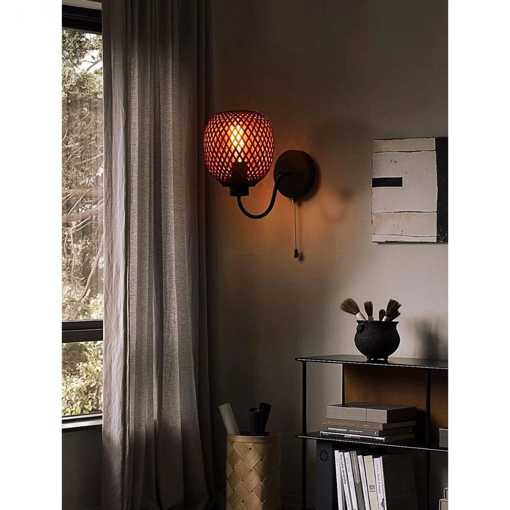 Wandleuchte im rustikalen Chic aus Rohrgeflecht