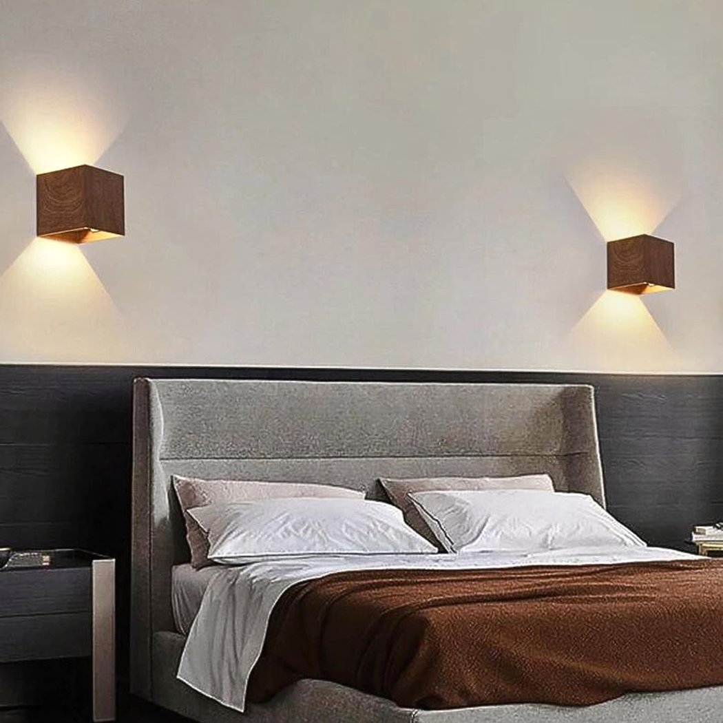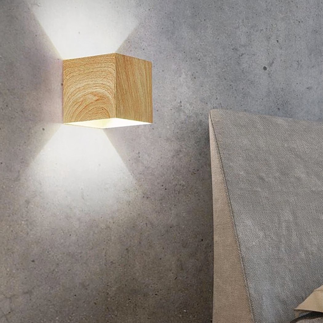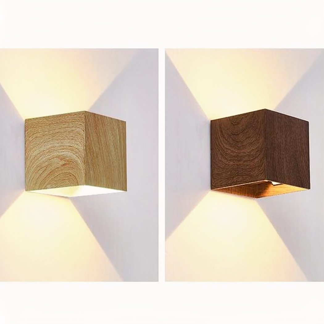 Quadratische Wandleuchte in Holzoptik im skandinavischen Stil