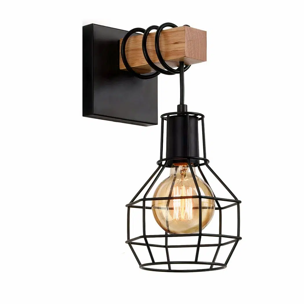 Tauchen Sie mit unserer wunderschönen, kabelgebundenen Wandleuchte aus Holz in die moderne Kunst ein. Ihr Sockel und der Lampenschirm aus robustem schwarzem Metall sorgen für eine effektive Befestigung und damit für die Langlebigkeit dieses einzigartigen Stücks. Die Holzhalterung fügt einen Hauch von natürlicher Eleganz hinzu und schafft einen zeitlosen Charme in Ihrem Raum.