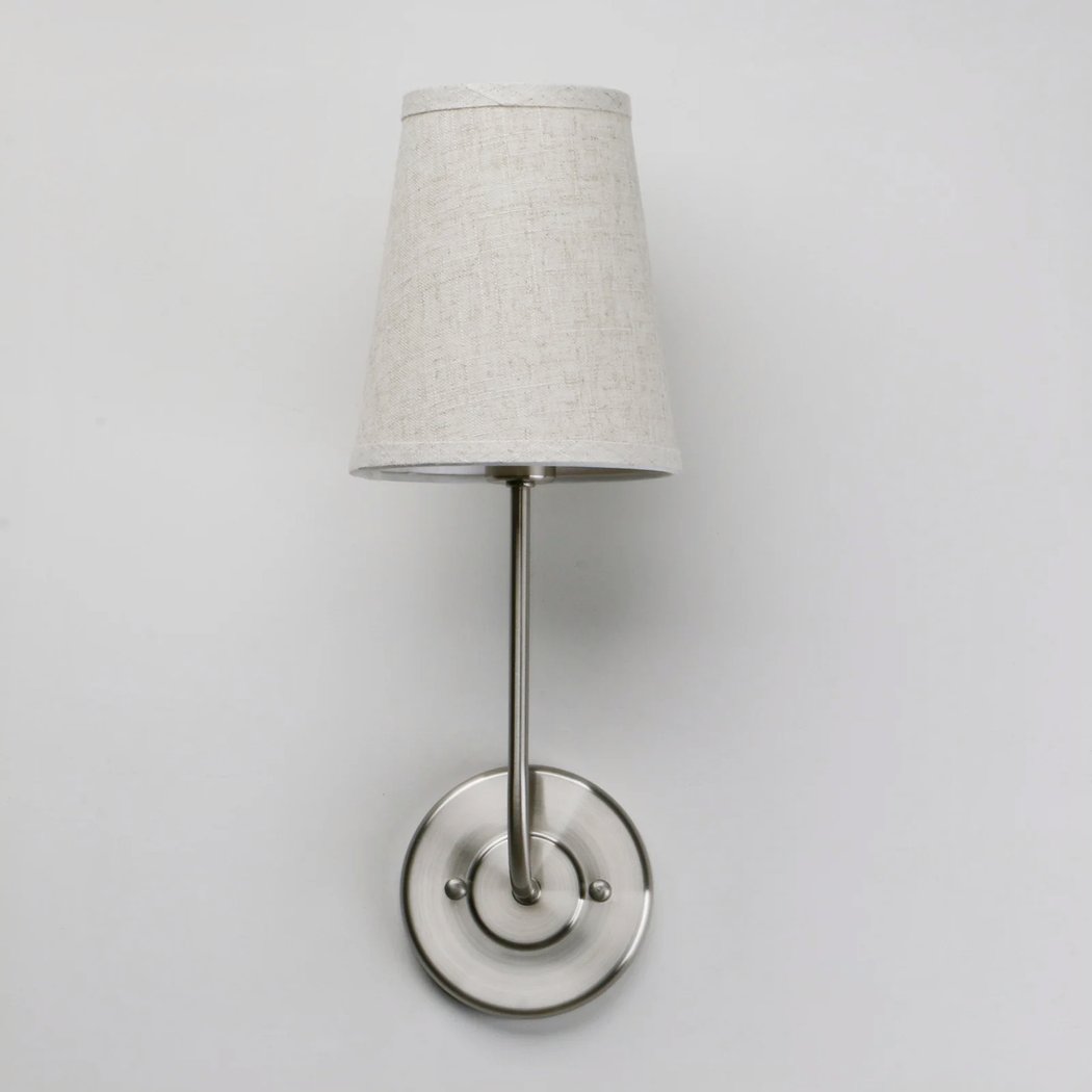 Der abgewinkelte Arm, der den Lampenschirm stützt, verleiht der gesamten Wandleuchte einen Hauch von Charakter und Finesse und erinnert an die Leuchten der damaligen Zeit.