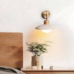 Wandleuchte aus Travertin und Holz