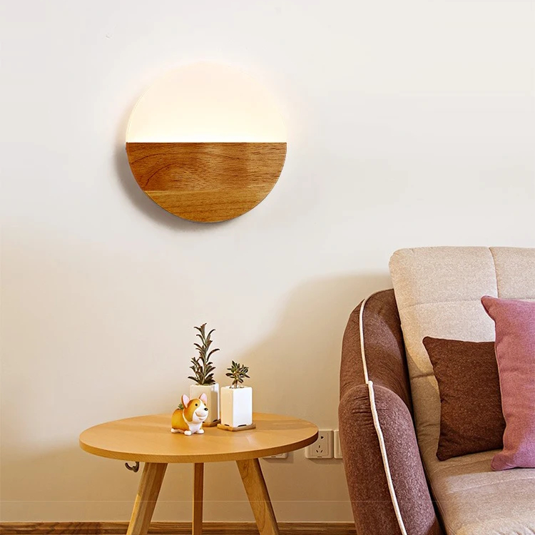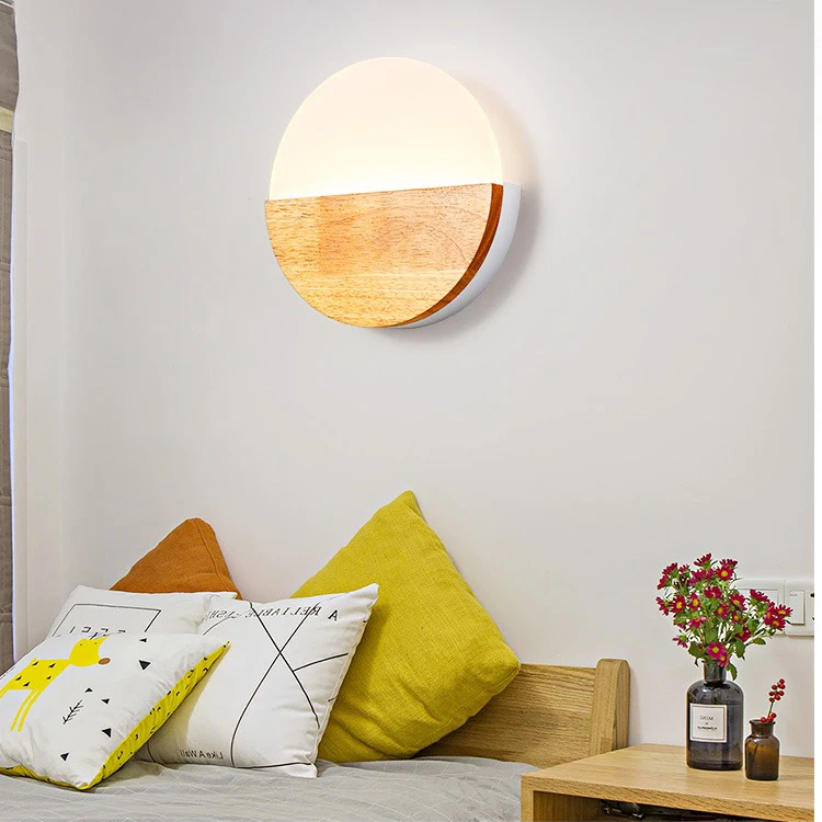 Die beleuchtete halbmondförmige Wandleuchte bietet ein elegantes und modernes Design, bei dem Holz und Acryl harmonisch miteinander verschmelzen. Die Holzstruktur sorgt für einen warmen und natürlichen Touch, während der leuchtende Teil aus Acryl einen modernen und feinen Touch verleiht.
