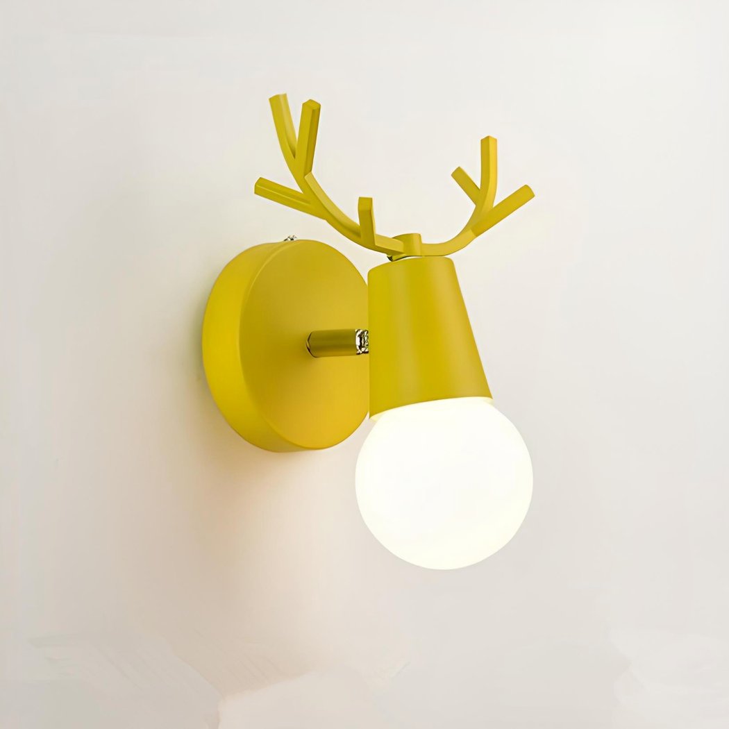 Unsere Wandleuchte ist eine kleine Leuchte im nordischen, farbenfrohen Design, die oben mit einem Hirschgeweih verziert ist. Inspiriert von der Natur und der Weite des Raumes, verleiht diese Wandleuchte jedem Interieur einen authentischen und warmen Touch.