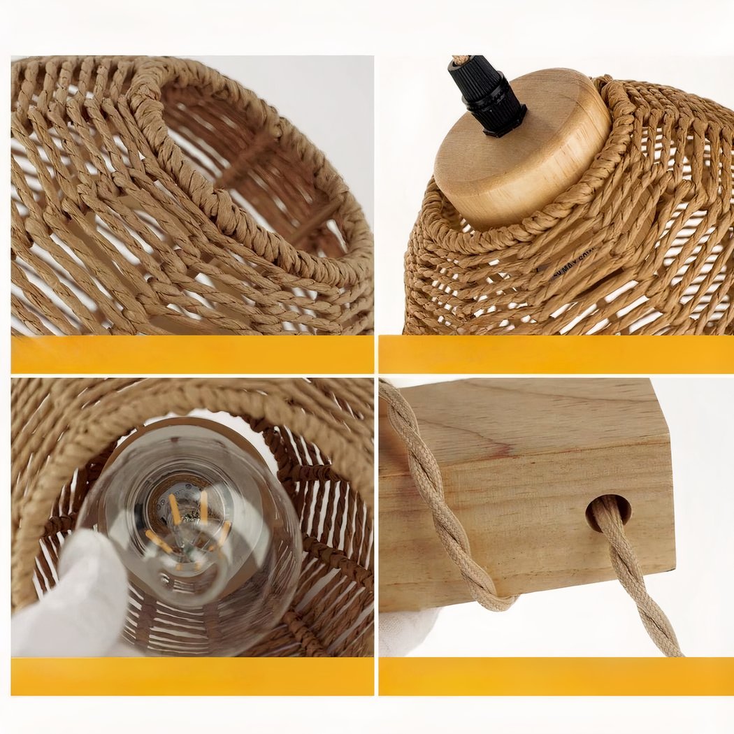 Hängende Wandleuchte aus Holz und Rattan im böhmischen Stil