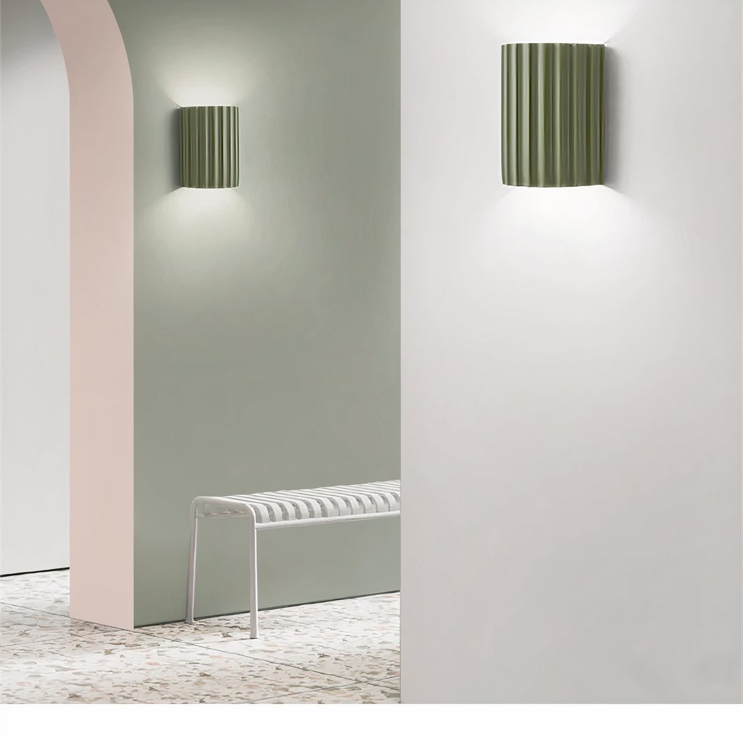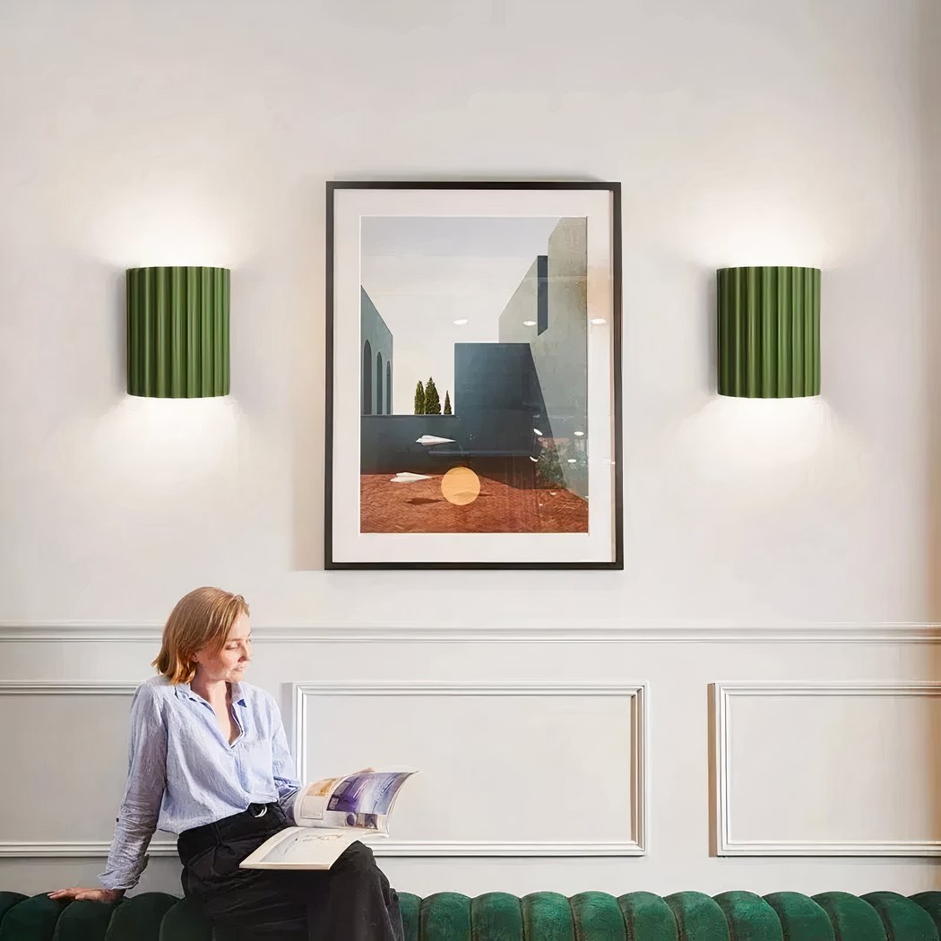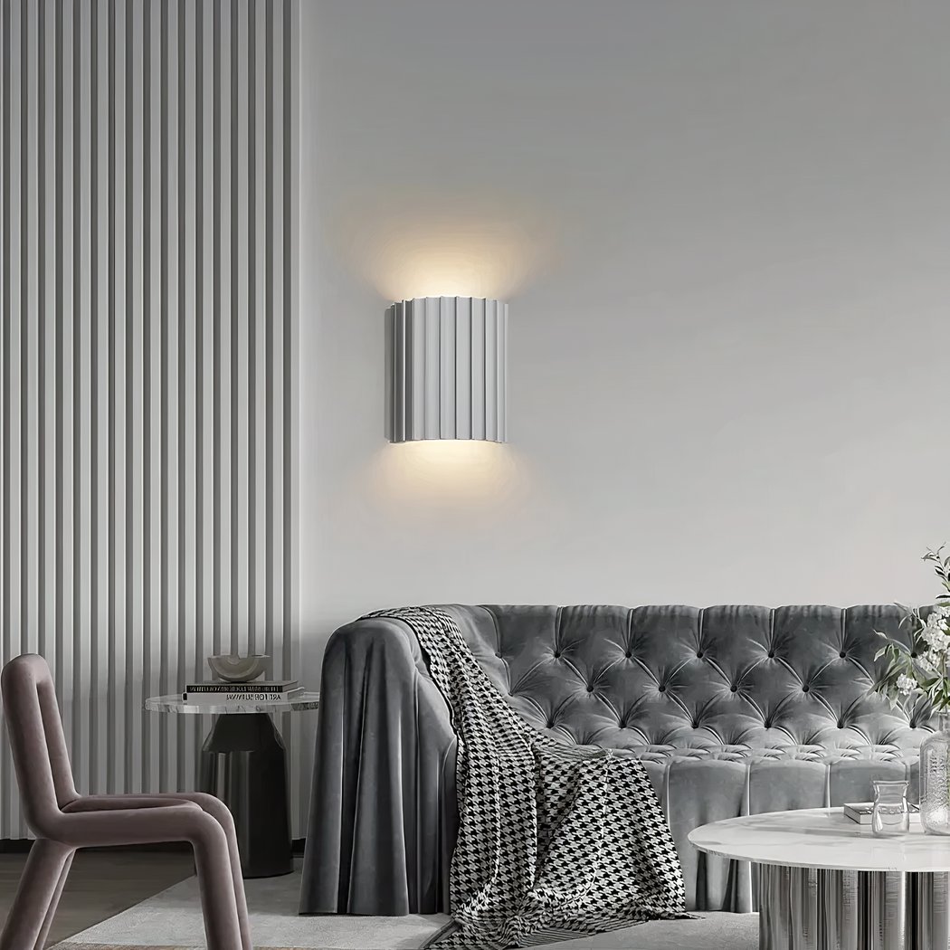 Diese Eigenschaft bietet eine optimale Beleuchtung, um Ihren Wohnbereich gleichmäßig zu erhellen und gleichzeitig das elegante Design der Wandleuchte aus geriffeltem Harz hervorzuheben.
