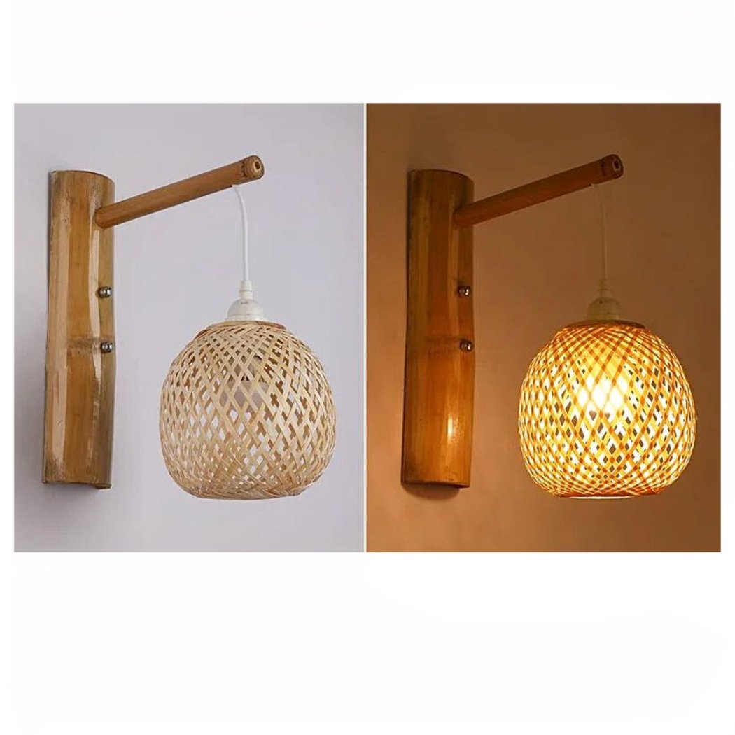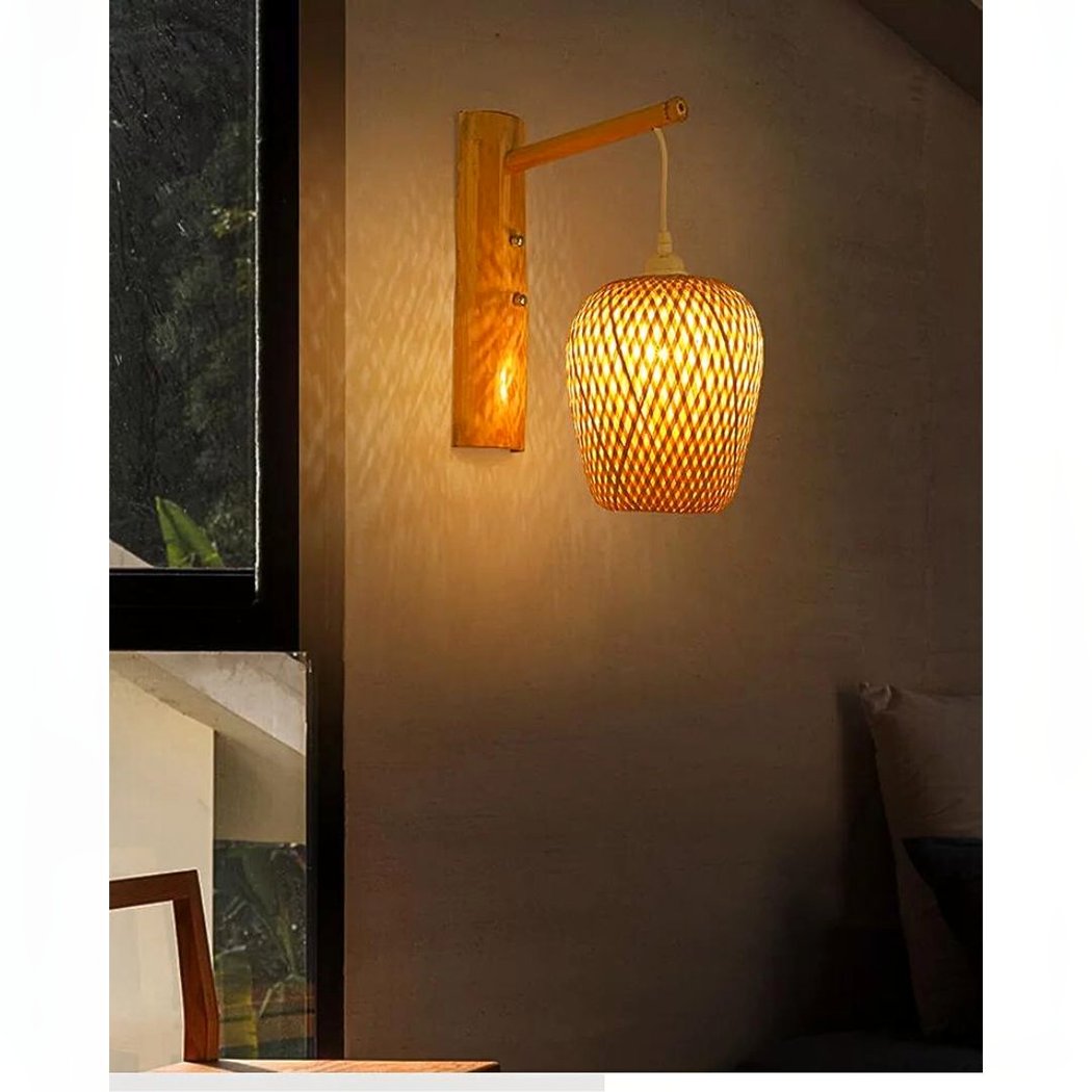 Wandleuchte aus handgewebtem Bambusrohrgeflecht