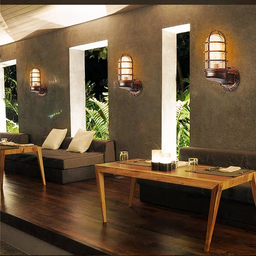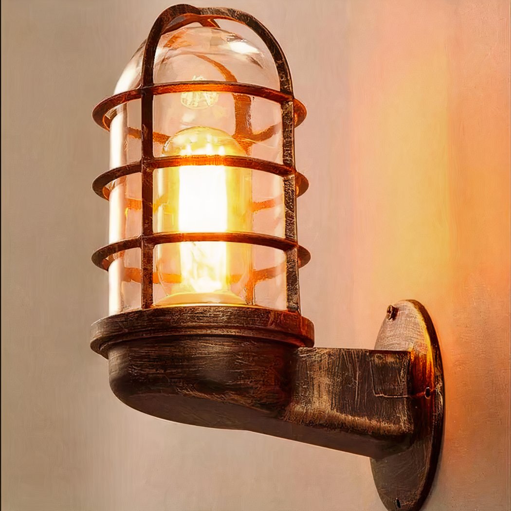 Wandleuchte für Innenräume mit Käfiglampe im industriellen Retro-Stil