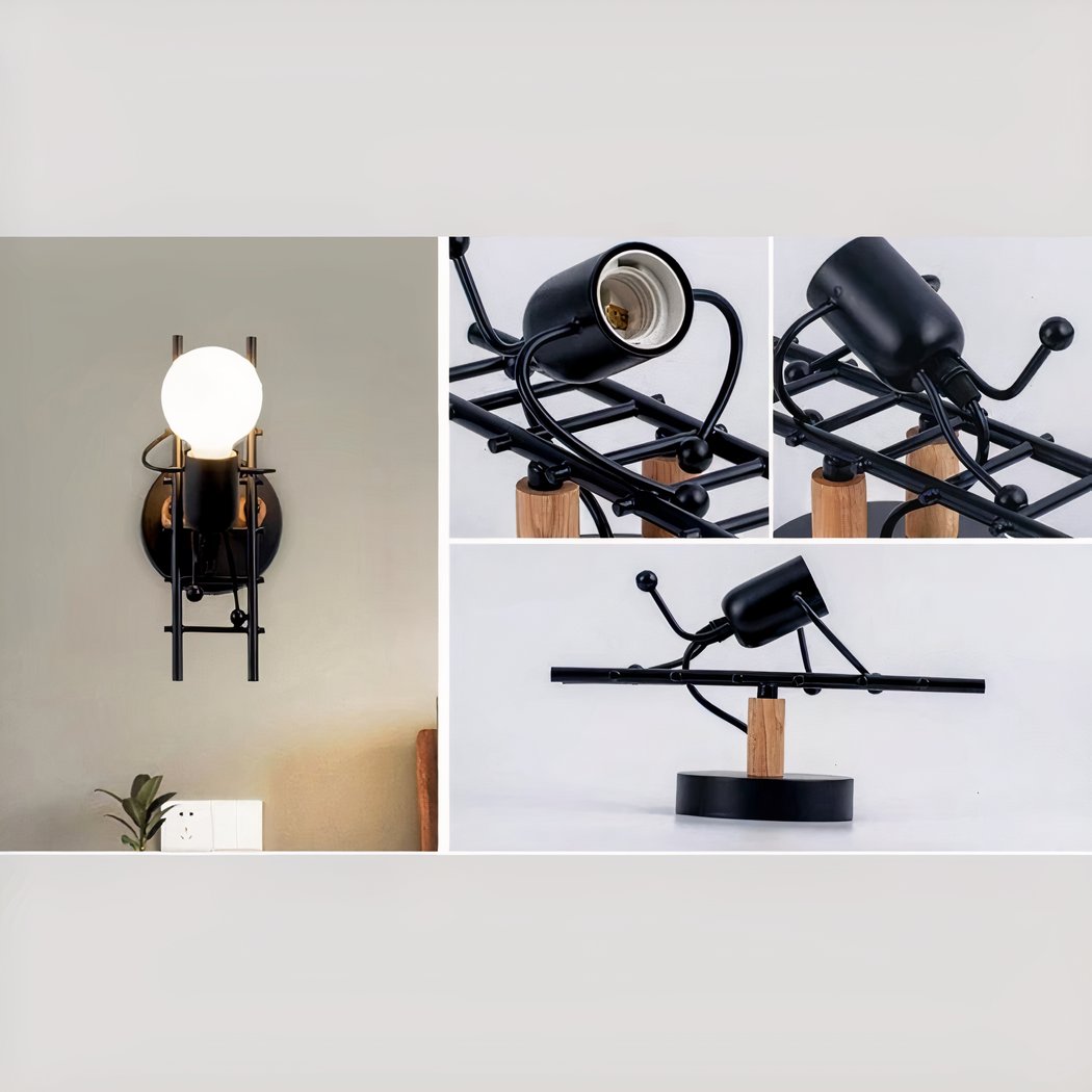 Wandleuchte schmiedeeisernes Männchen, das eine Leiterin hinaufsteigt
