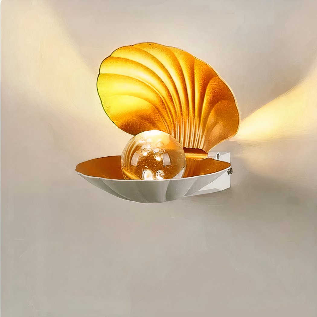 Das einzigartige Design unserer Wandleuchte in Form einer Muschel bietet Ihnen die Möglichkeit, das Licht nach Belieben zu verändern. Mit der oberen Schale, die sich herunterklappen lässt, können Sie die Muschel für diffuses Licht vollständig schließen oder sie anpassen, um eine direktere, gedämpfte Lichtstimmung zu erzeugen.