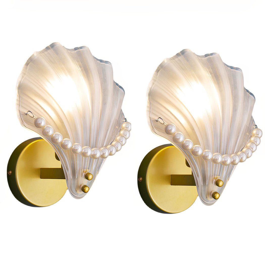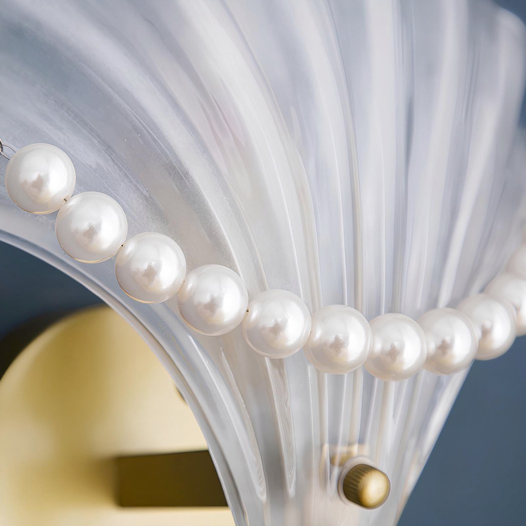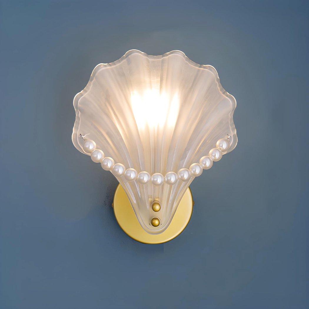 Wandleuchte in Muschelform mit weißen Perlen