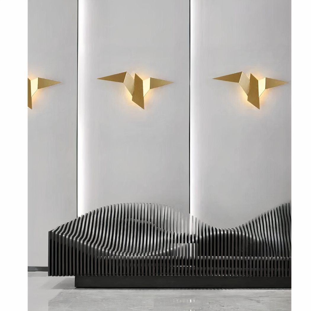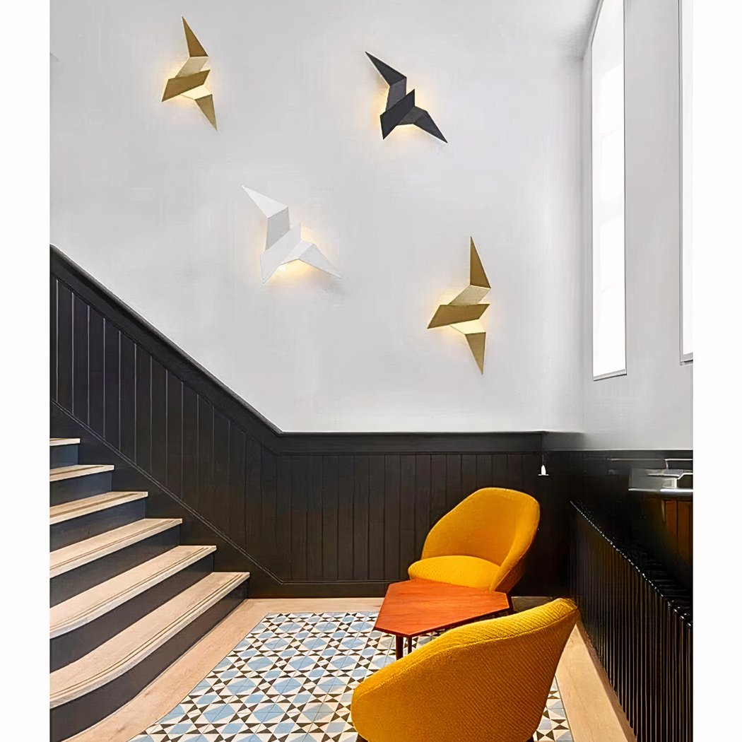 Unsere Wandleuchte aus Metall mit dem fesselnden Design eines Origami-Vogels bringt einen Hauch von Originalität und Leichtigkeit in Ihr Zuhause. Inspiriert von der feinen Kunst des Papierfaltens, ist diese Lampe so gestaltet, dass sie wie ein Vogel im Flug aussieht und Ihre Einrichtung ein Element der Bewegung und Poesie hinzufügt.