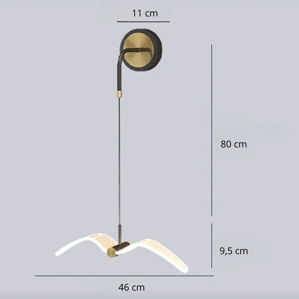 Der perspektivische Effekt, der durch die Länge der Wandleuchte entsteht, erweckt den Eindruck, dass der Vogel gerade wegfliegt, und verleiht Ihrem Wohnraum eine dynamische Dimension.