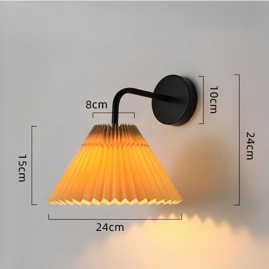 Diese Wandleuchte für das Wohnzimmer erinnert an die 70er und 80er Jahre und verleiht Ihrer Leuchte einen eleganten Retro-Touch. Ihr ziehharmonikaartig gefalteter Stoffschirm bildet einen Kegel, der ein weiches, warmes Licht ausstrahlt.