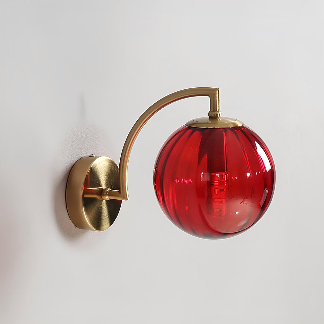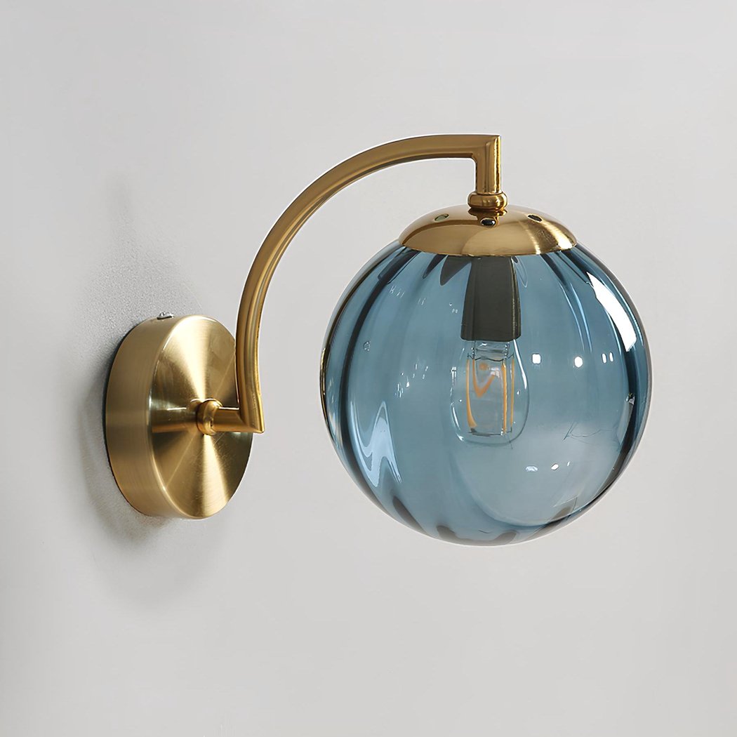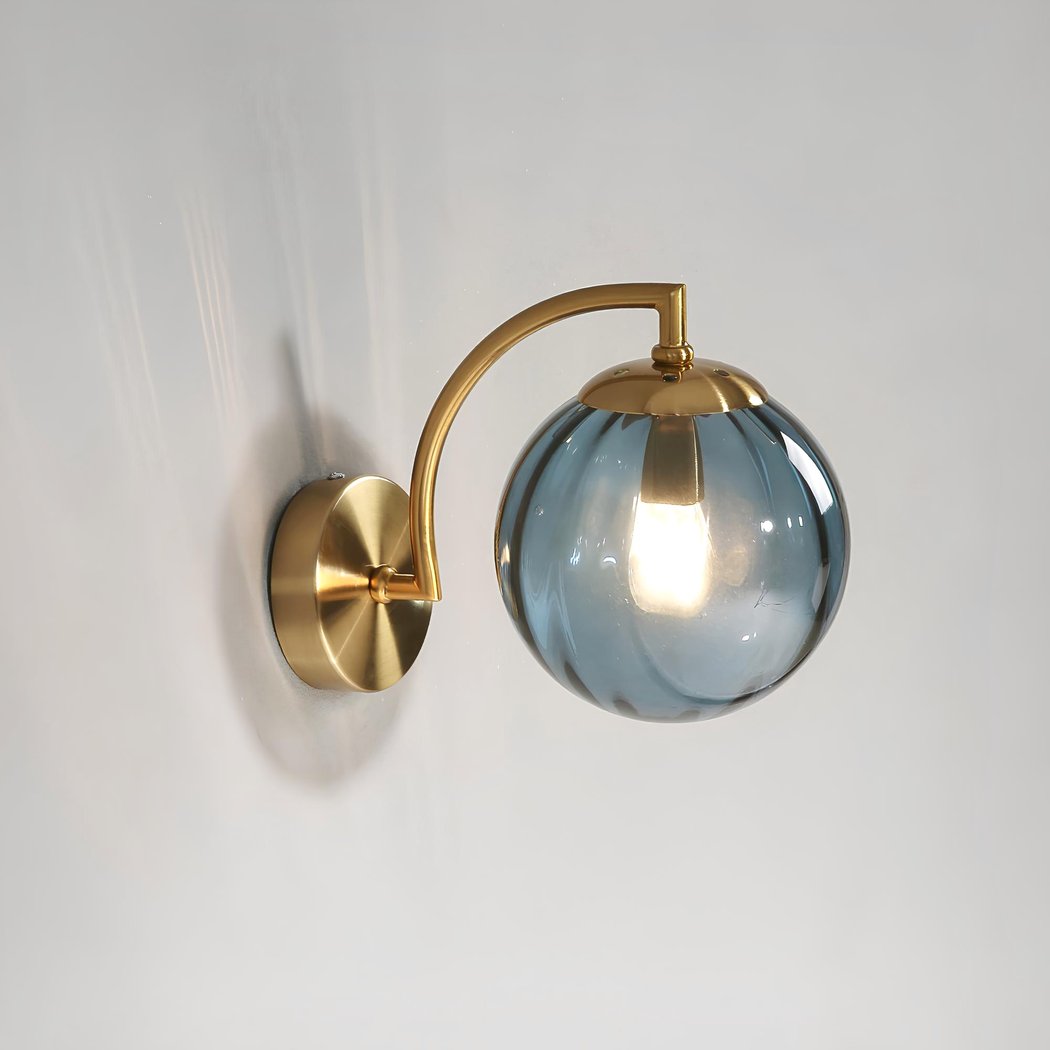 Diese Wandleuchte ist nicht nur ein dekoratives Objekt, sondern auch eine funktionale Lichtquelle. Dank der farbigen Glaskugel wird die Helligkeit wunderbar verteilt und schafft eine sanfte und angenehme Atmosphäre.