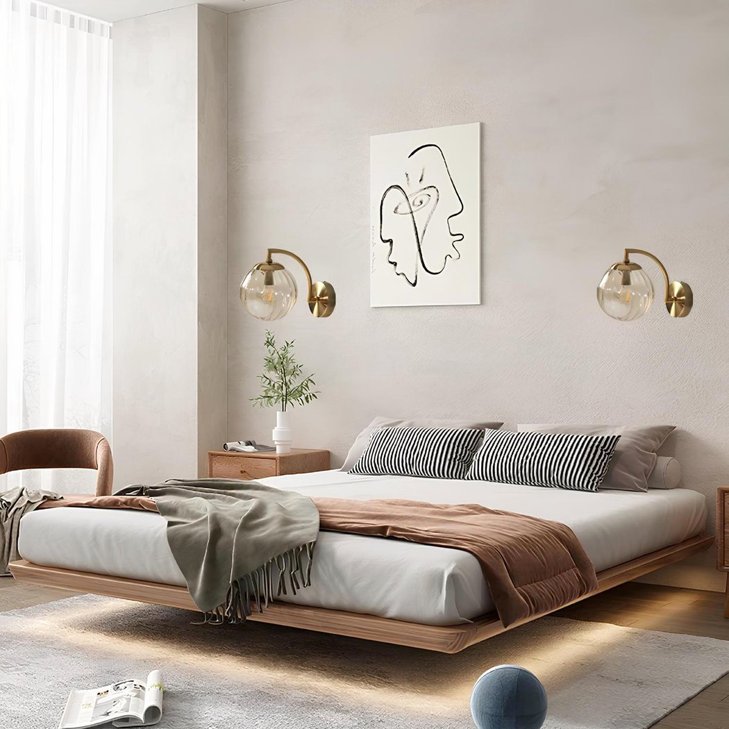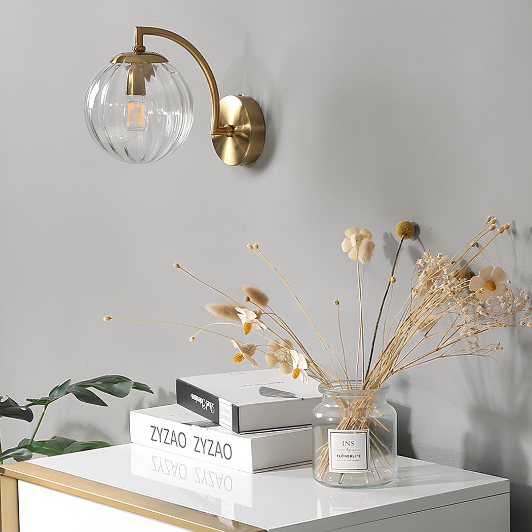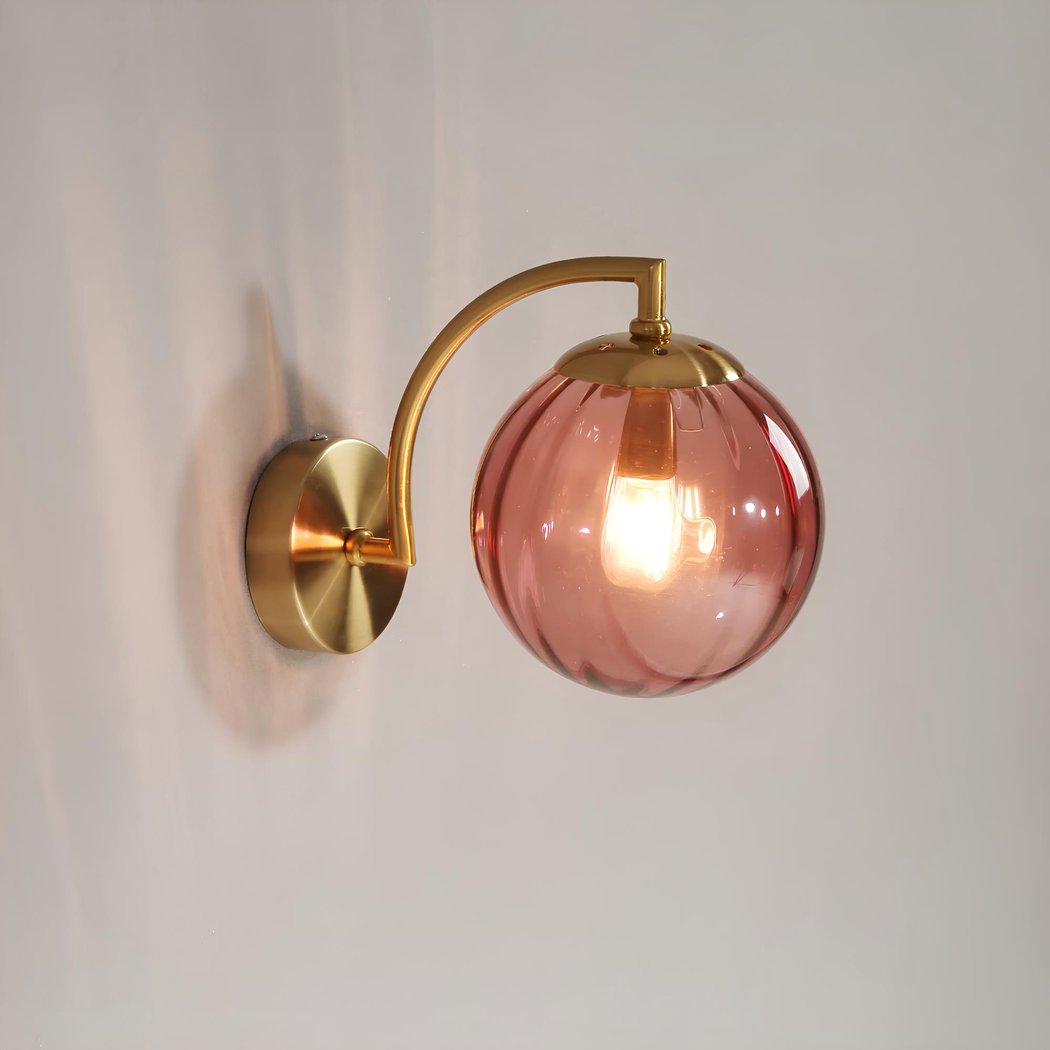 Diese Wandleuchte ist nicht nur ein dekoratives Objekt, sondern auch eine funktionale Lichtquelle. Dank der farbigen Glaskugel wird die Helligkeit wunderbar verteilt und schafft eine sanfte und angenehme Atmosphäre.