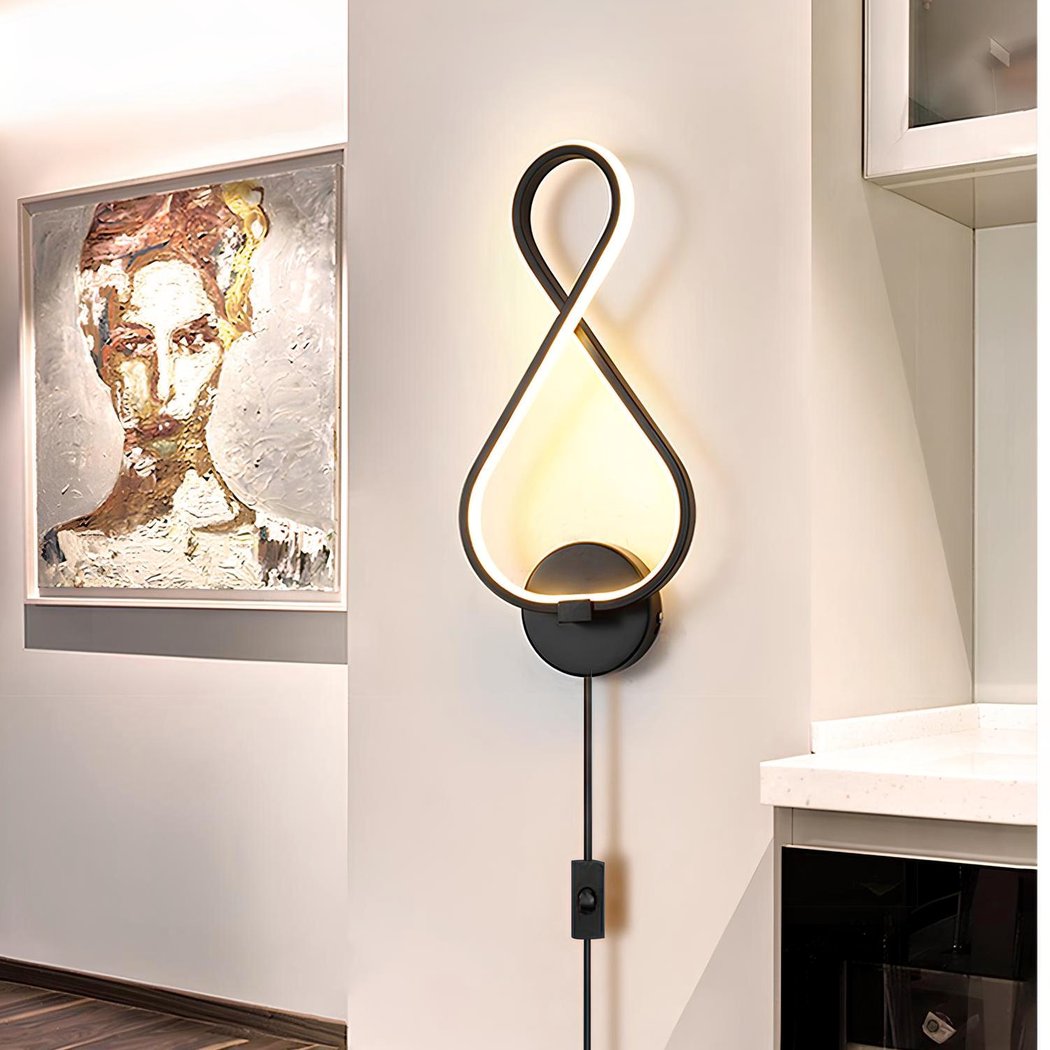 Diese Wandleuchte für das Wohnzimmer bietet ein auffallend modernes, abstraktes schwarzes Design, das sich durch elegante und harmonische Kurven auszeichnet. Die abgerundeten Linien erzeugen einen fesselnden visuellen Effekt und fügen der zeitgenössischen Ästhetik eine künstlerische Dimension hinzu.